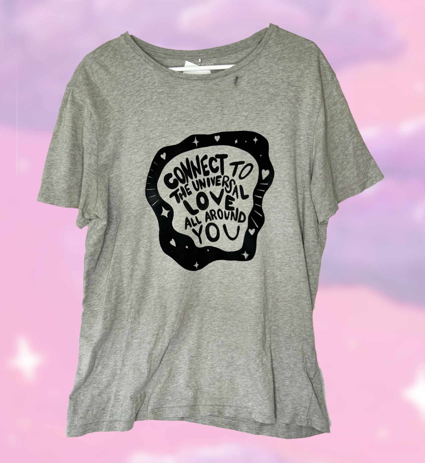 Front: Screen printed "Connect to the Universal Love All Around You"