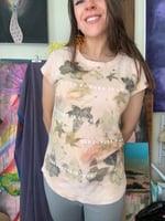 This secondhand medium t-shirt was created into a truly one of a kind up-cycled piece with the collaboration of two artist: Madeline Made Designs & Metamorphosis