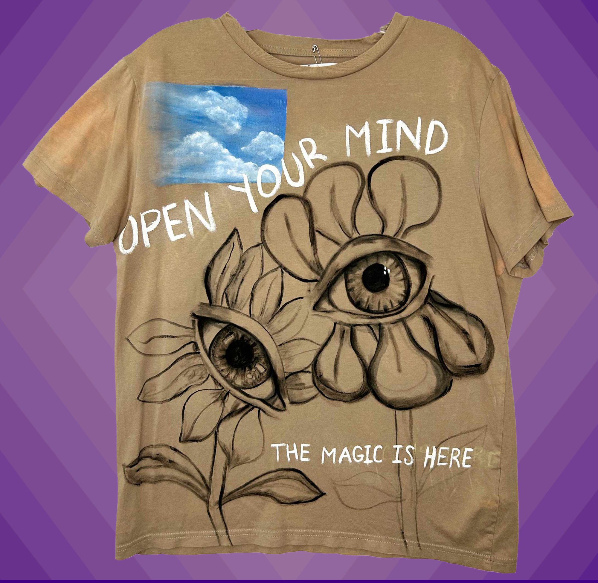 Wearable painting created on second hand t-shirt with Earth in mind.