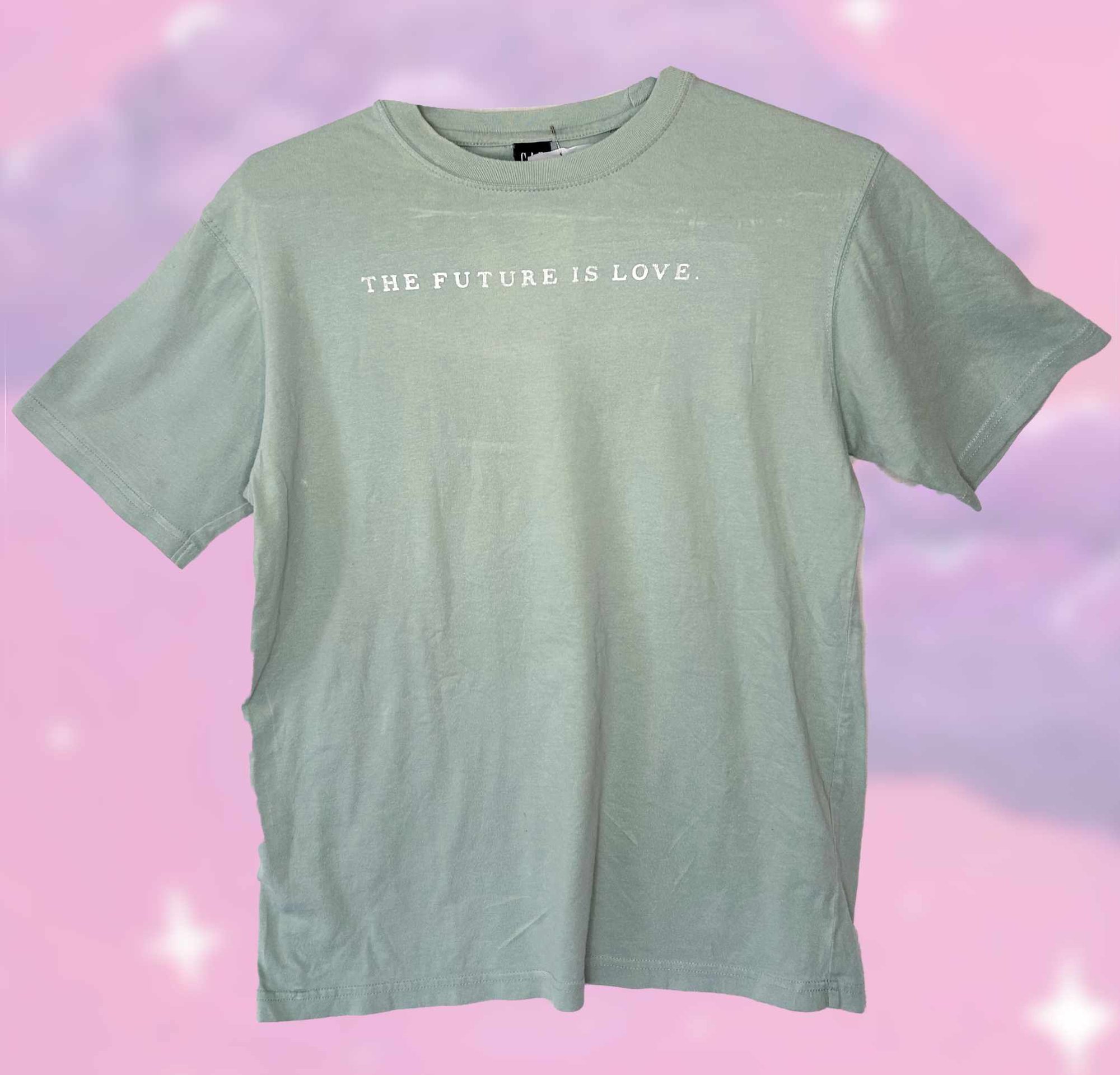 Front: Screen printed "The Future is Love"